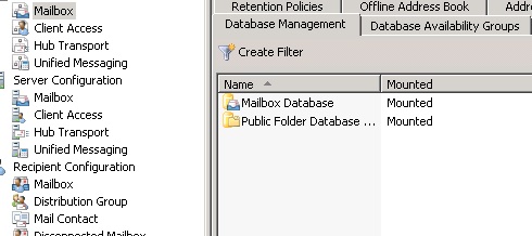 3)      Double click on the Exchange database (usually named "Mailbox Database") you wish to change (or right click -> Properties)
