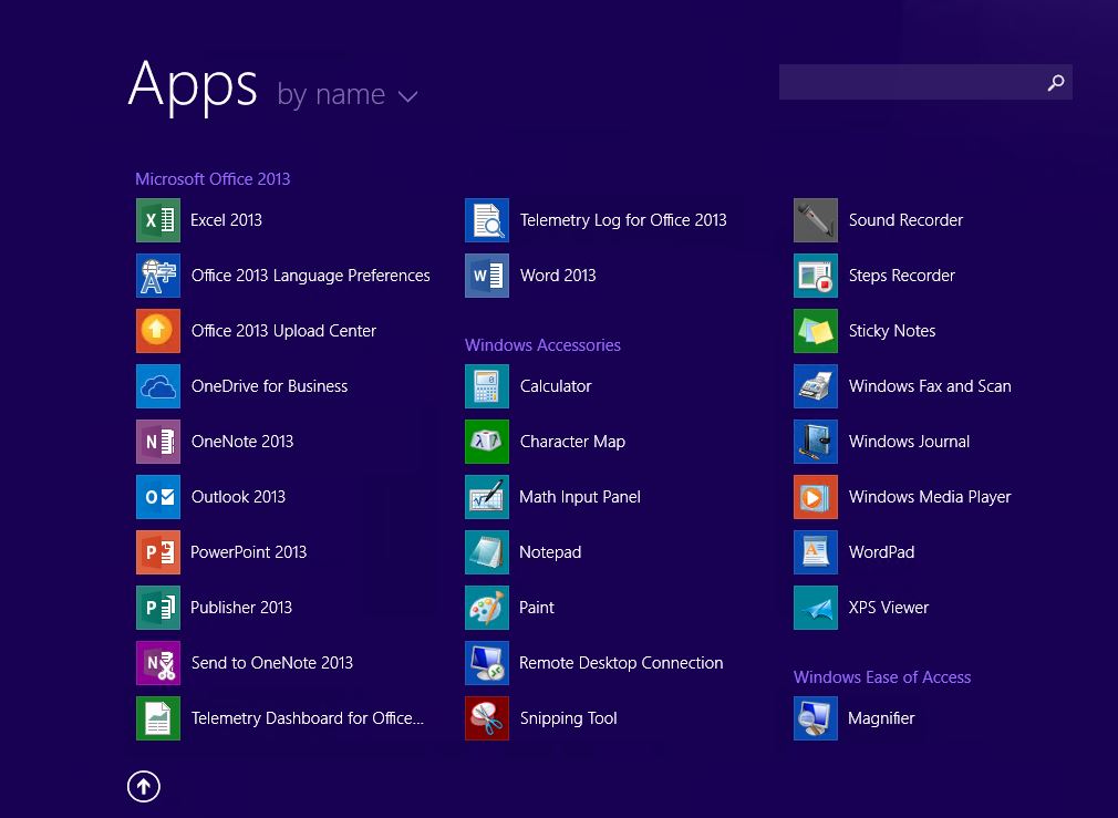 Click on the down arrow at the bottom of the screen to show all of the installed applications;