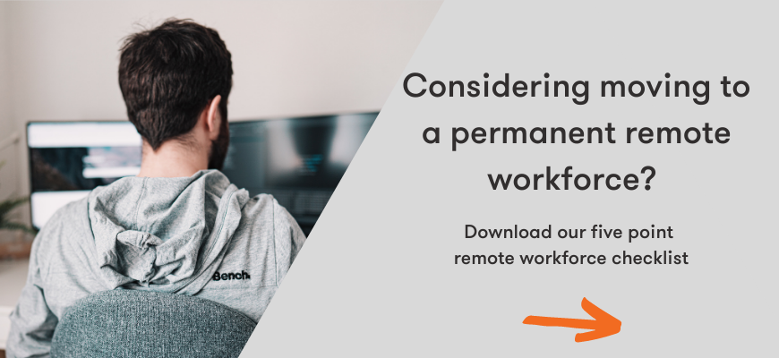 In this blog we begin to address some of the considerations when moving to a permanent remote workforce, and help you understand the overall process of doing this successfully. Due to the fact we have moved numerous businesses to remote working set-ups, we have a pretty good idea of the sort of things it is important to think about before taking the leap.